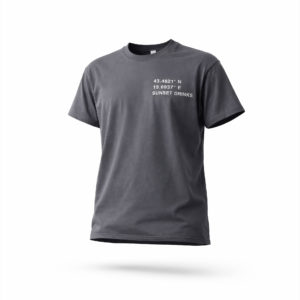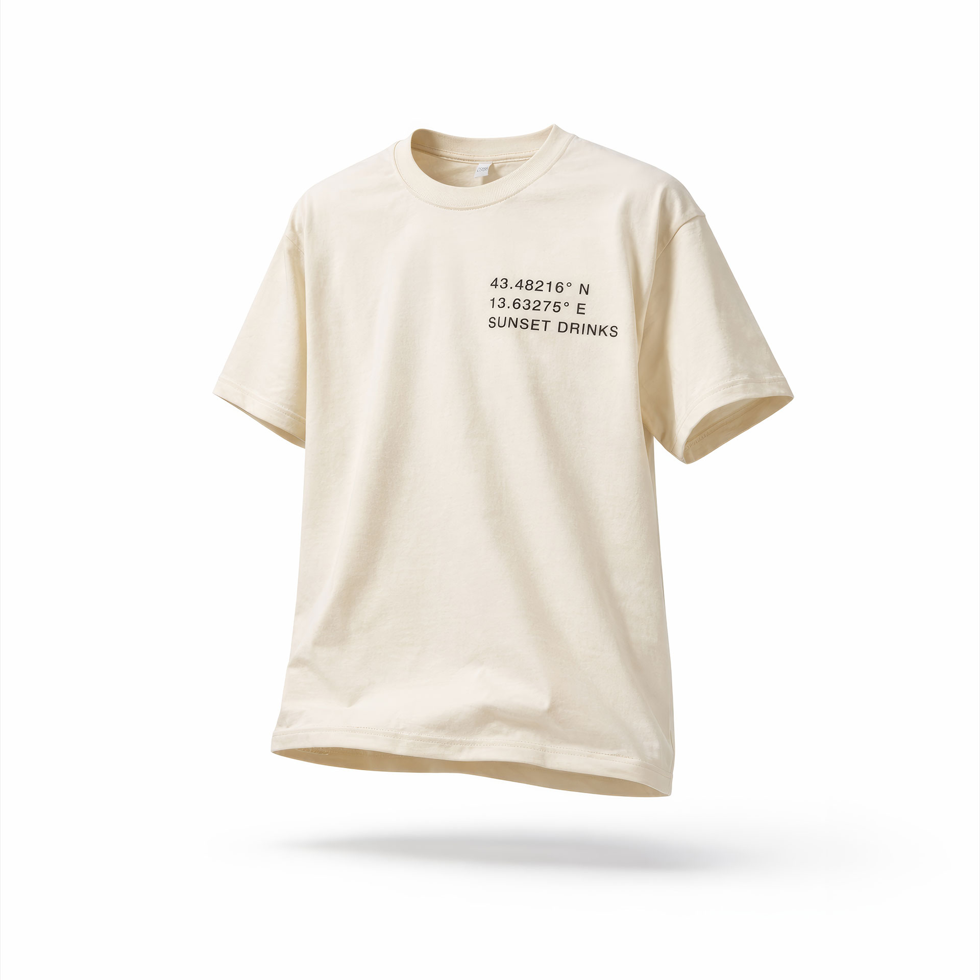 Design minimal con coordinate geografiche frontali e firma “SUN RHYTHM” sul retro, per uno stile iconico e immediatamente riconoscibile.